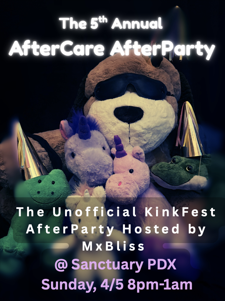 Mx. Bliss is hosting the 5th Annual Unofficial Kinkfest AfterParty, a place to provide aftercare and support for each other, landing softly (or getting in that last scene or two), as a wrap-up to a glorious KinkFest 2026 weekend. -