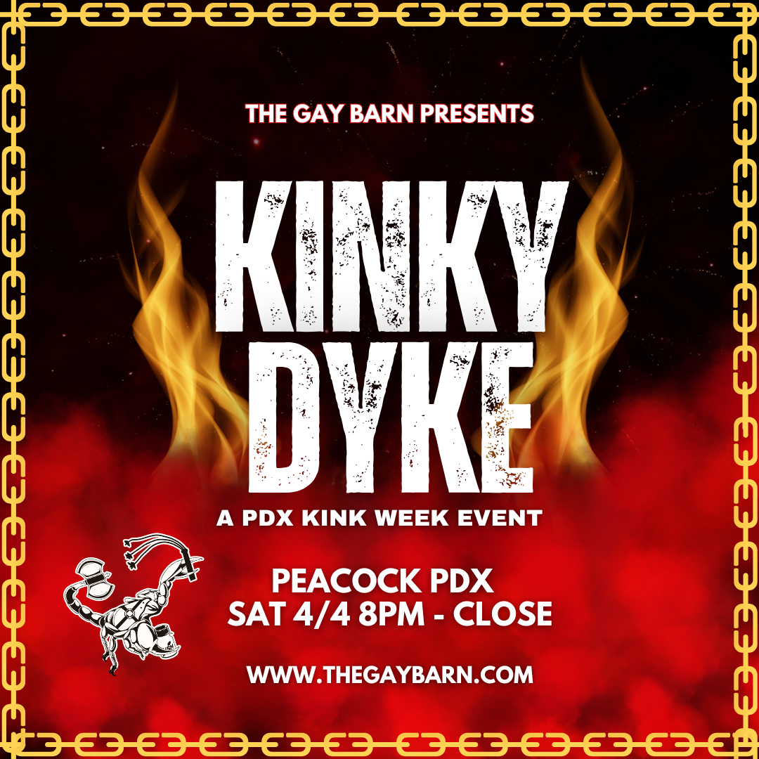 The Gay Barn takes over Peacock PDX for a night of kink, connections, and community for dykes, lesbians, and the queers who love them. Anyone But Cis Dudes!